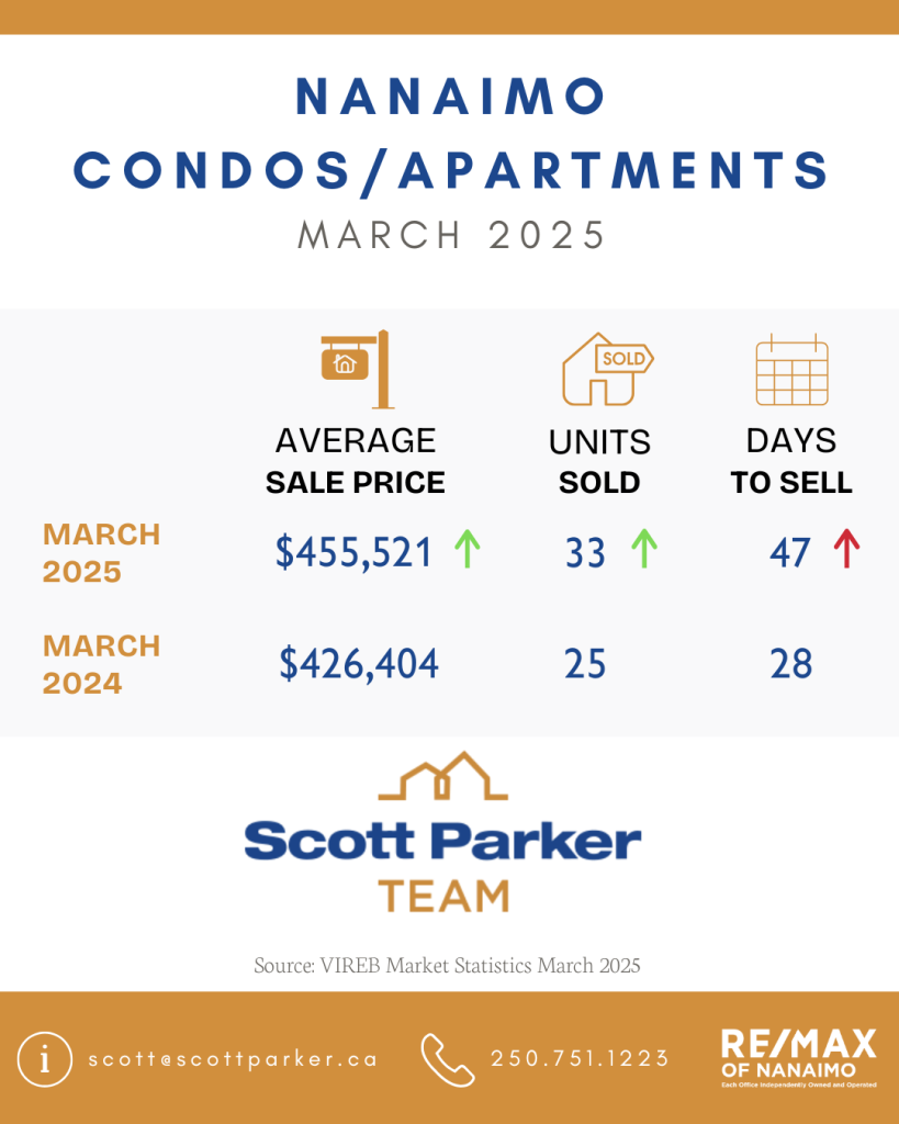 The Vancouver Island Real Estate Board (VIREB) recorded 637 unit sales (all property types) in March 2025, down one percent from one year ago. Year-over-year active listings (all property types) rose by six percent, climbing to 3,708 from 3,488 the previous March.